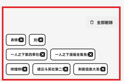 3、需要点击搜索记录右上角的【垃圾桶】图标,会出现删除按钮